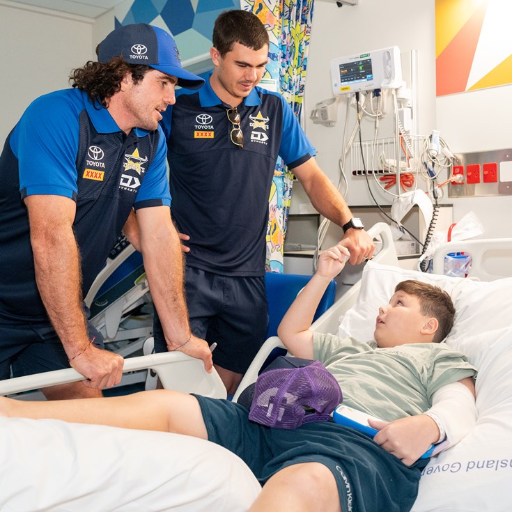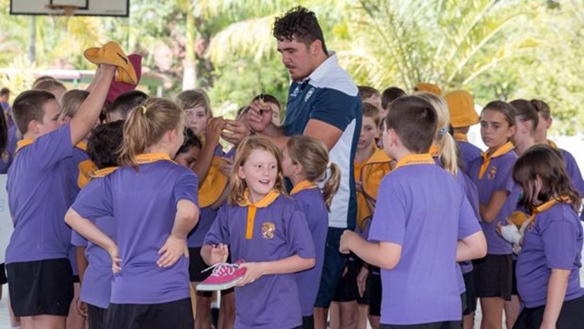 Students from Richmond Hill State School received a special visit this week from North Queensland Toyota Cowboys under-20 players Cyrus Timo-Latu and Braden Uele and Cowboys mascot Bluey.