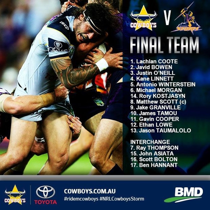 Team list: Cowboys v Storm