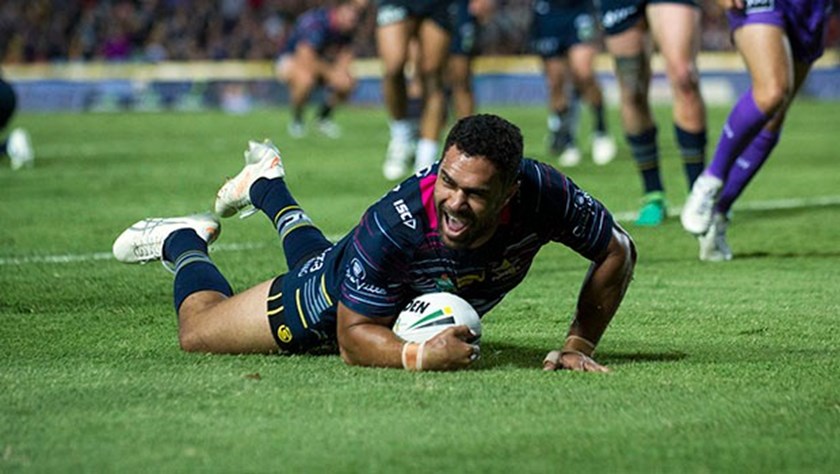 The next Warriors kick was defused courtesy of Kyle Feldt's secure hands in the air. The pressure break was what the home side needed, with Mason Lino's kick going out on the full, giving Cowboys possession at the halfway mark. Michael Morgan made short work of it after that, running on the fifth tackle to find Lachlan Coote who delivered a perfect pass to Justin O'Neill to score.