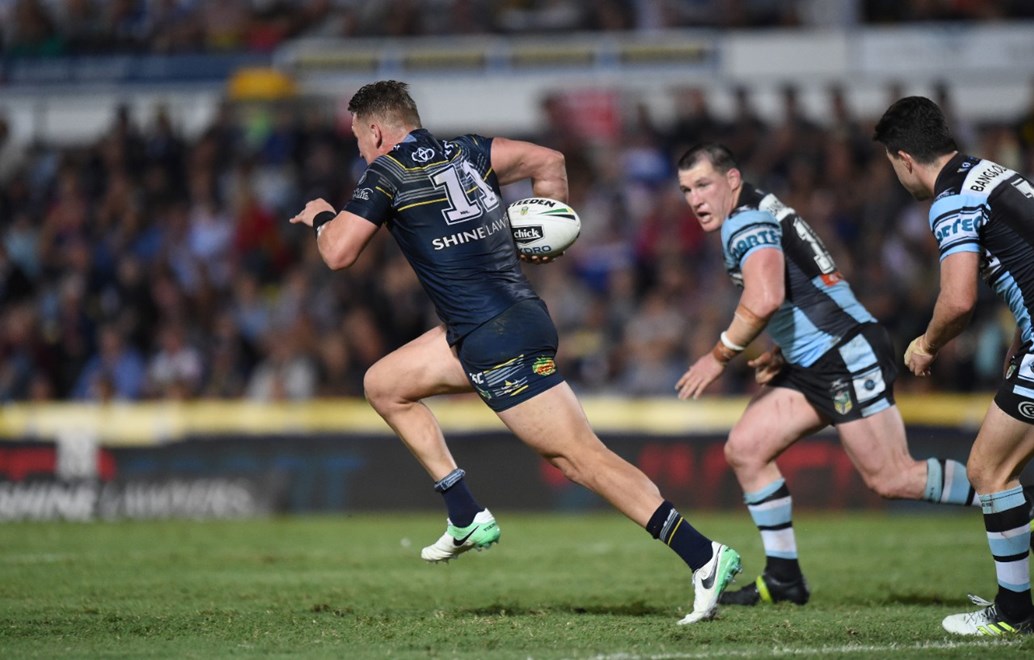 Cronulla Sharks 26 (Brailey, Gallen, Holmes, Townsend tries; Maloney 5 goals) def North Queensland Toyota Cowboys 16 (Lowe, Morgan, Martin tries; Lowe 2 goals) at 1300SMILES Stadium. Half-time: 24-6. Crowd 15,539.