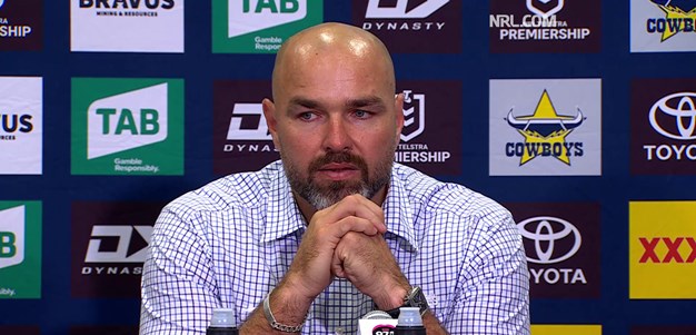 Brisbane Broncos and North Queensland Cowboys coaches and captains chat to the media after their Telstra Premiership Round 2 clash