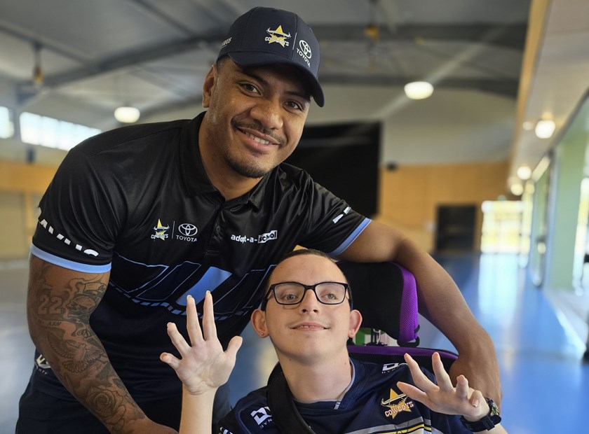 At 192cm and 115kg, North Queensland Toyota Cowboys Forward Thomas Mikaele is an imposing figure, but he’s got GIANT shoes to fill subbing in for retired Jake Granville as Townsville Community Learning Centre’s ‘adopted’ Cowboy.